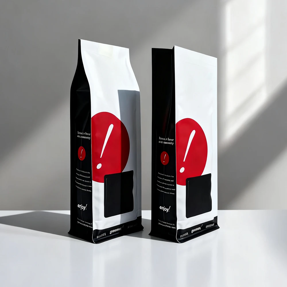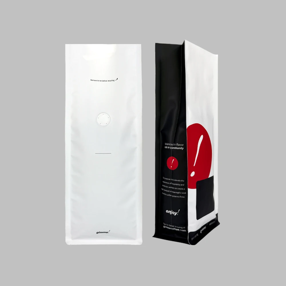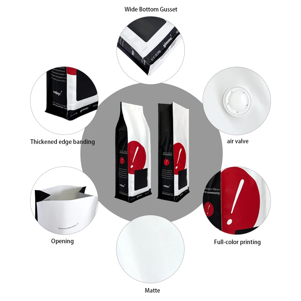 Features Degassing Valve, Heat Seal Closure, Easy Tear Opening, Flat Bottom Standing, Custom Printing