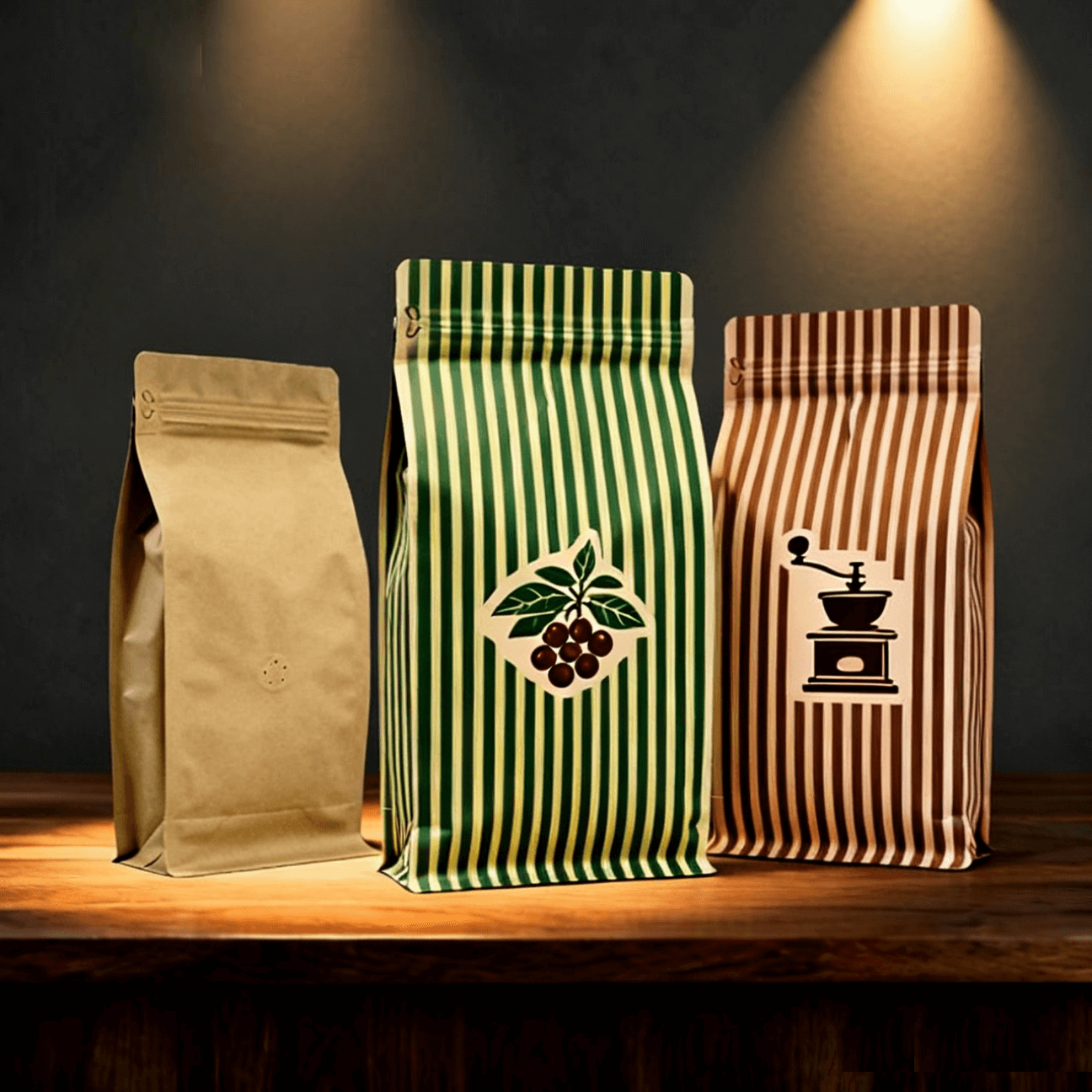 Our custom printed coffee packaging solutions allow for extensive personalization to match your brand identity. As shown in the samples, we support various design styles including gold foil stamping, vertical striping, and window options. Whether you need packaging for whole beans or ground coffee, our moisture-proof box pouches deliver industrial-grade protection with a boutique aesthetic.