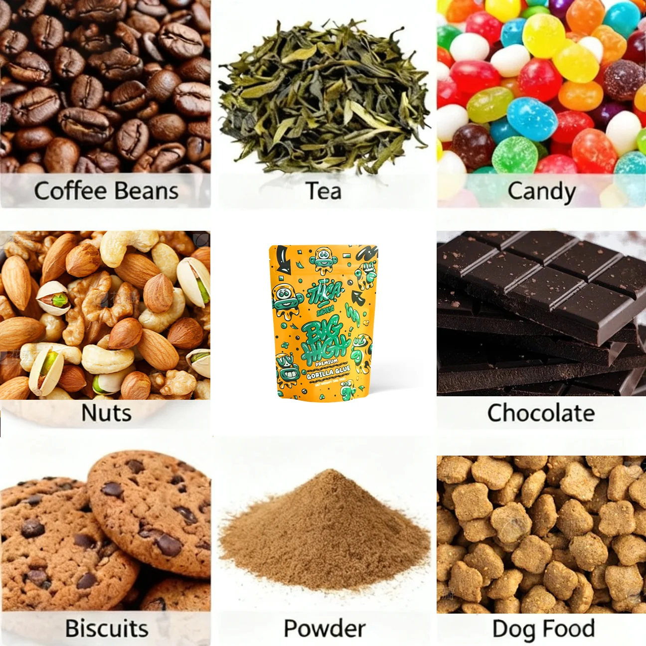 Application Coffee beans, ground coffee, snacks, candies, nuts, dried food and other dry food products.